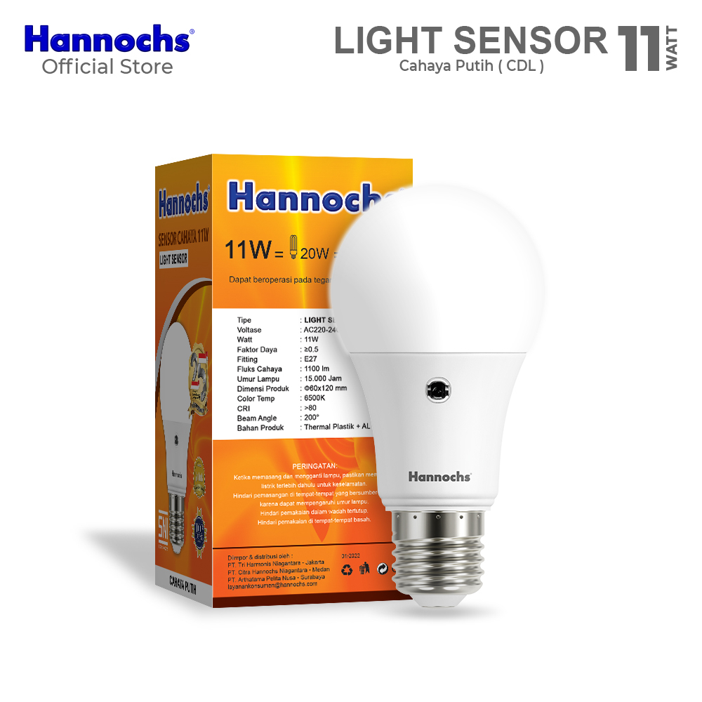 Hannochs Lampu Bohlam LED Light Sensor 11W Cahaya Putih isi 3pcs