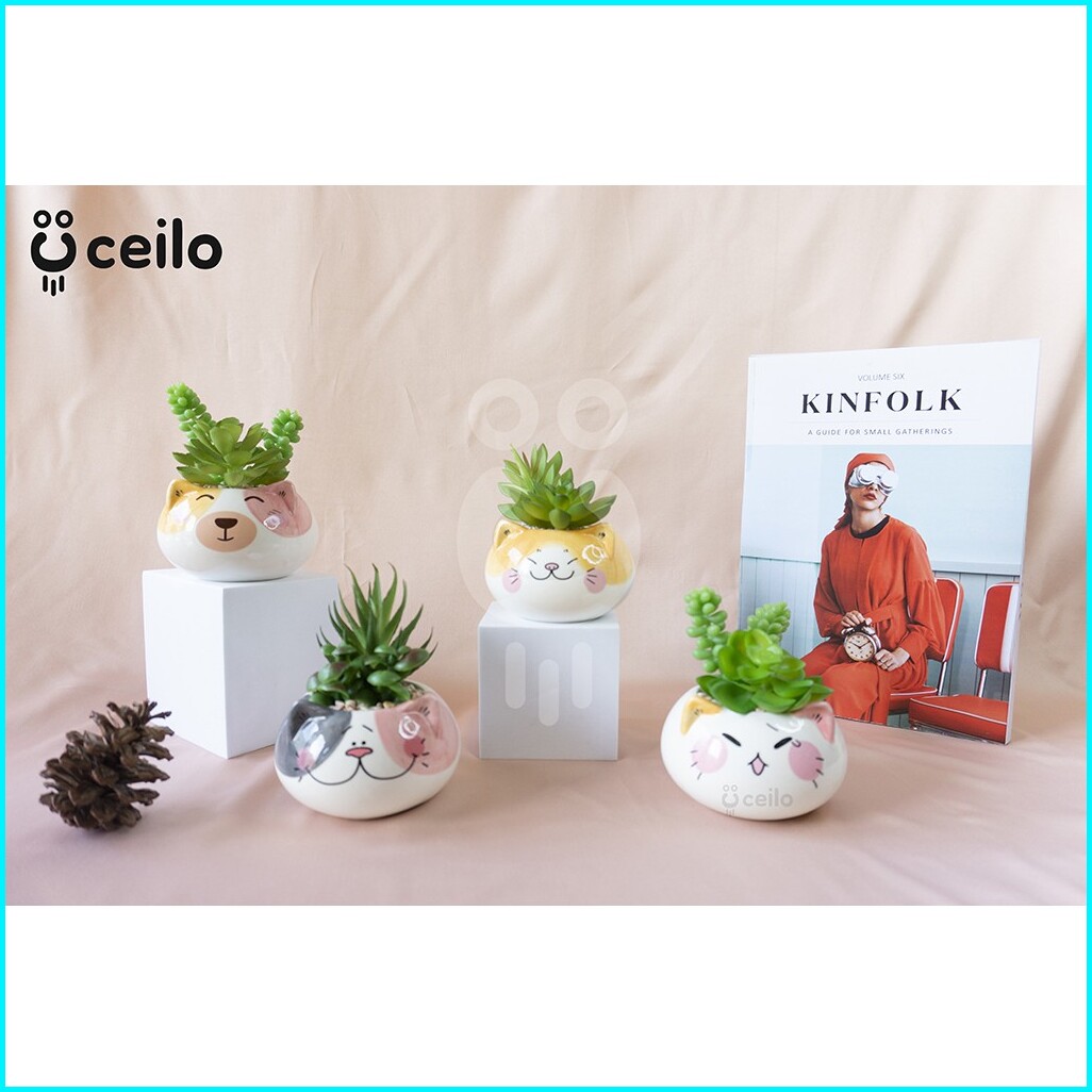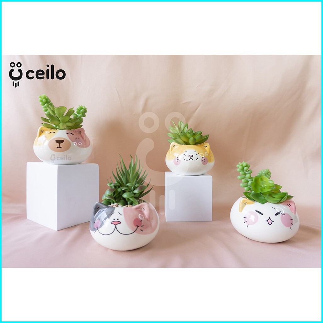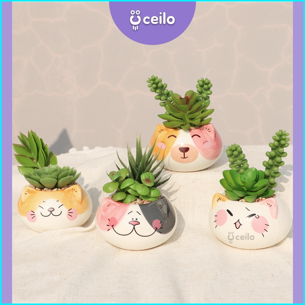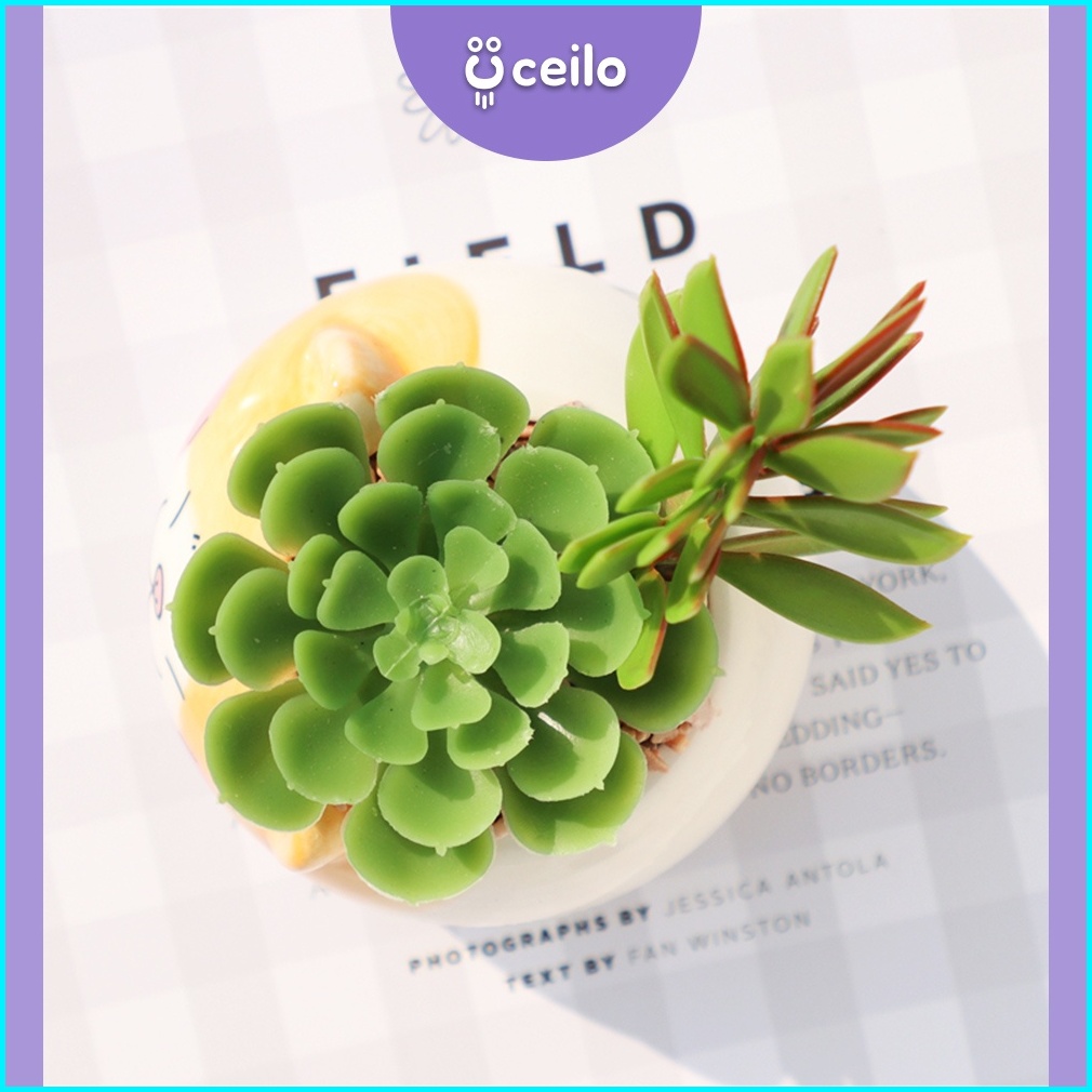 Ceilo Kaktus Sukulen Pot Karakter Lucu Artificial Premium Tebal Cactus Succulent Tanaman Dekorasi Bunga Hias Untuk Kado