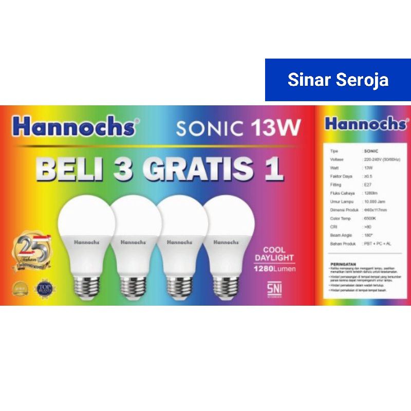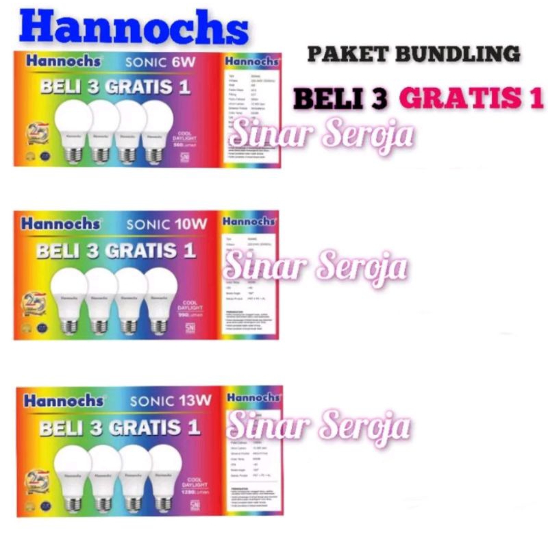 Lampu LED Bohlam Hannochs SONIC LED Bulb 6w 10w 13w 18w Paket Buy 3 Get 1