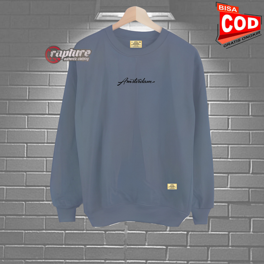 Switer Cowok Distro Oversize Warna Abu Paralon List Amsterdam Basic Sweater Pria Original Tebal Katun Flecce Bigsize M-X