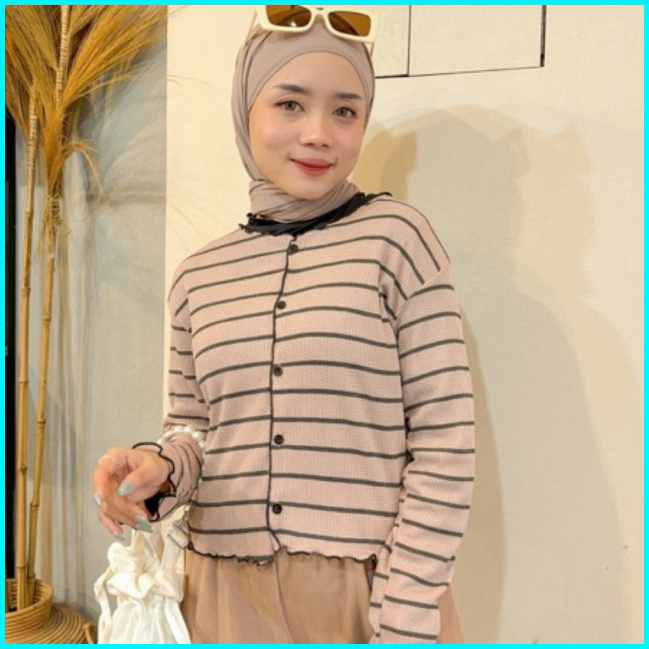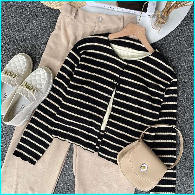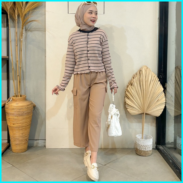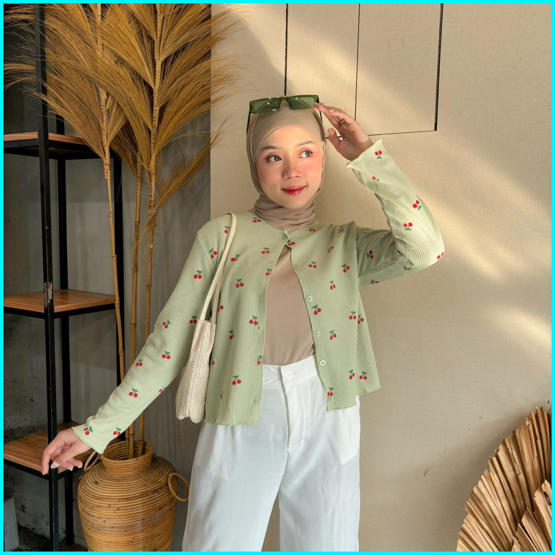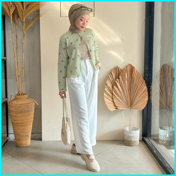 Vienetta Id - One Set Setelan Wanita Kekinian Cardi Rib Knit Bunga Kulot Crinkle Korean Style Lucu Buat Healing Piknik J