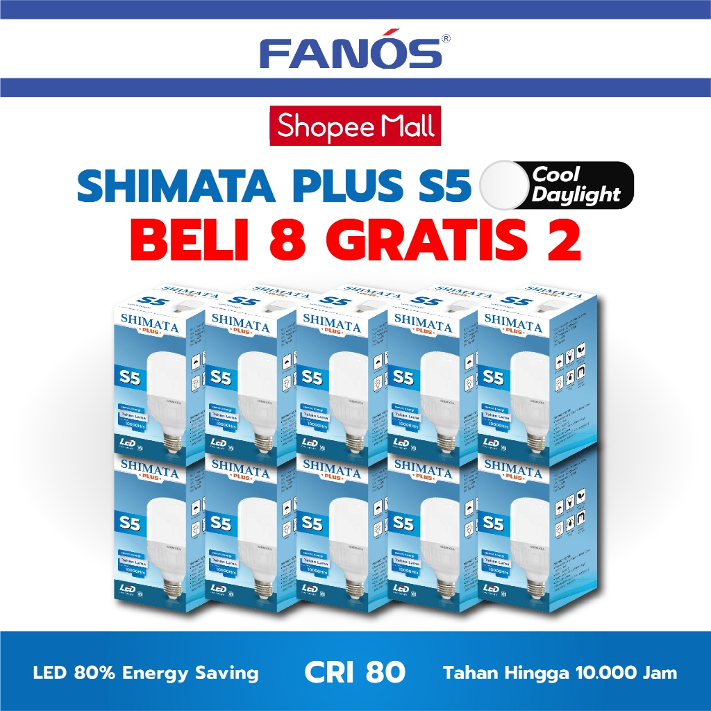 Shimata Plus S5 [Beli 8 Gratis 2] Lampu LED Bohlam Cahaya Putih