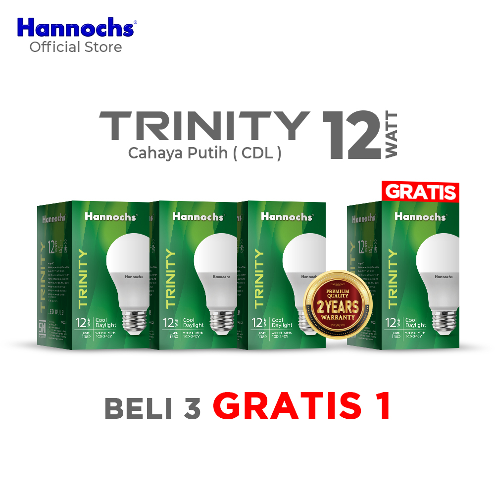 Hannochs Lampu Bohlam LED Trinity 12W isi 4pcs Multipack Cahaya Putih