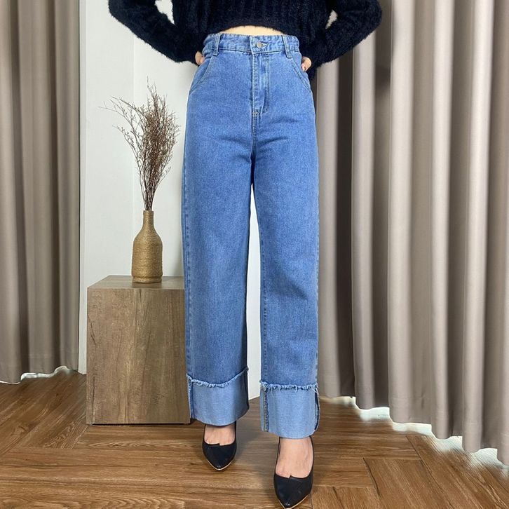 Fashion Wanita Jeans Panjang Bawahan Lipat Celana Jeans Wanita High Waist Jeans Kulot Jeans Boyfriend Import Jeans Panja