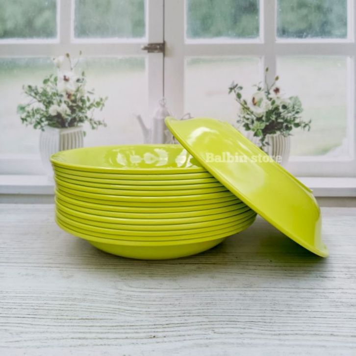 loyang martabak kue terlaris Promo Spesial 12 pcs piring melamin bulat cekung dalam ukuran 22.5 cm warna hijau bahan te