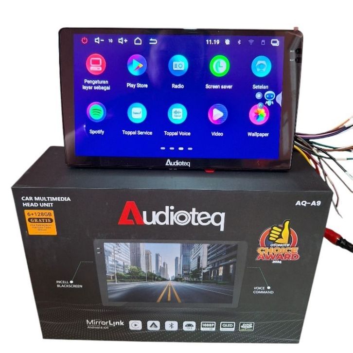 Head unit android 10 inch audioteq AQ-A9 ram 6+128 support 360 voice command incell black screen