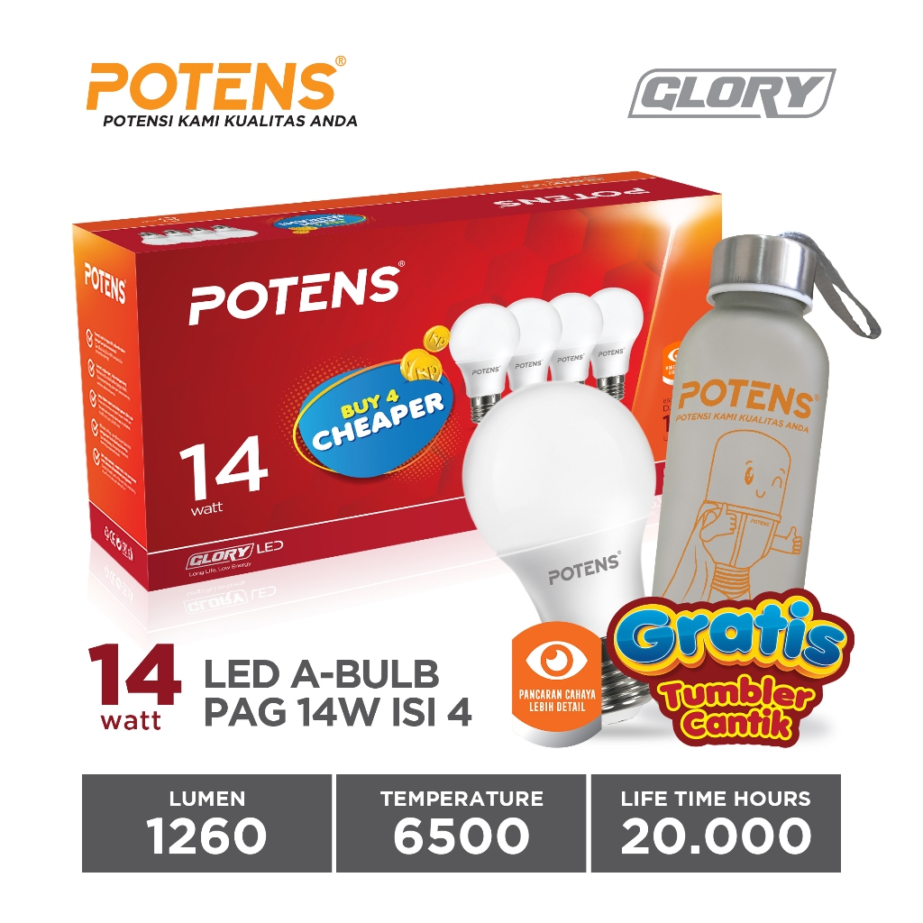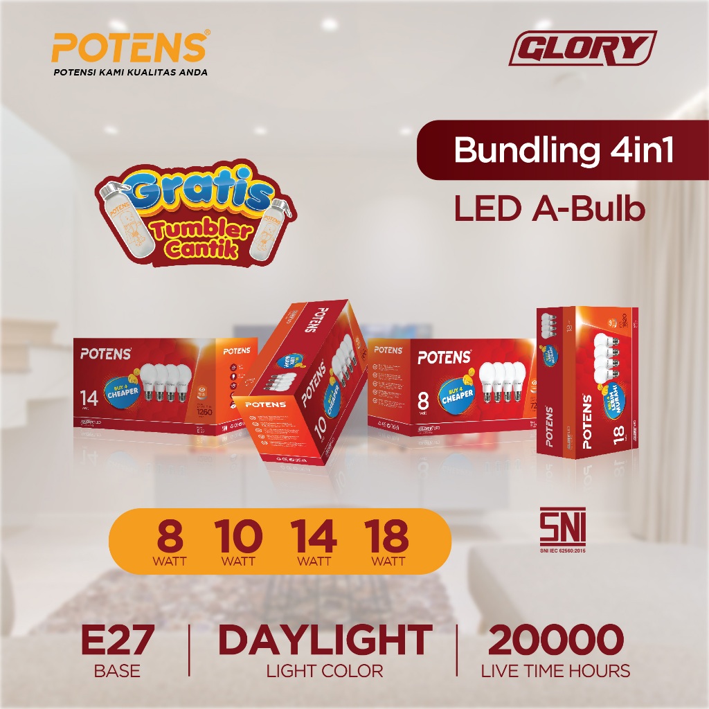 POTENS Paket Bundling Lampu Bohlam LED PAG-4in1 Empat Jadi Satu, Gratis Botol Tumbler Cantik