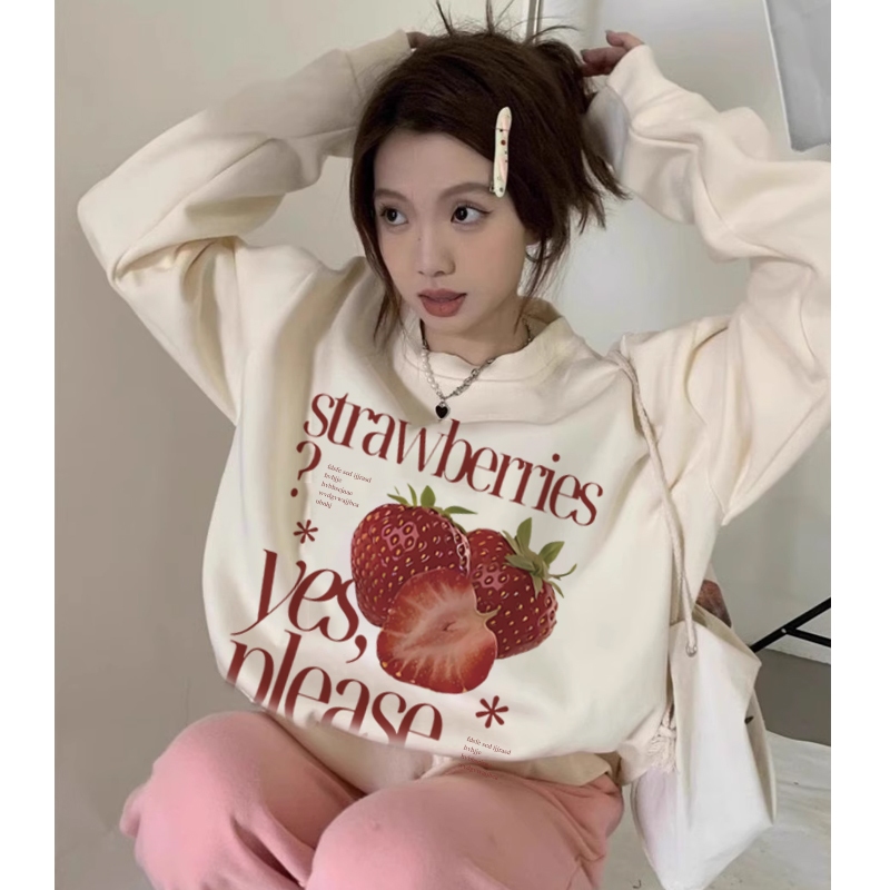 The Monseur Gallery Switer Wanita Oversize Sweater Lengan Panjang Oversized Street Style Korean Style Kaos Cetakan Straw