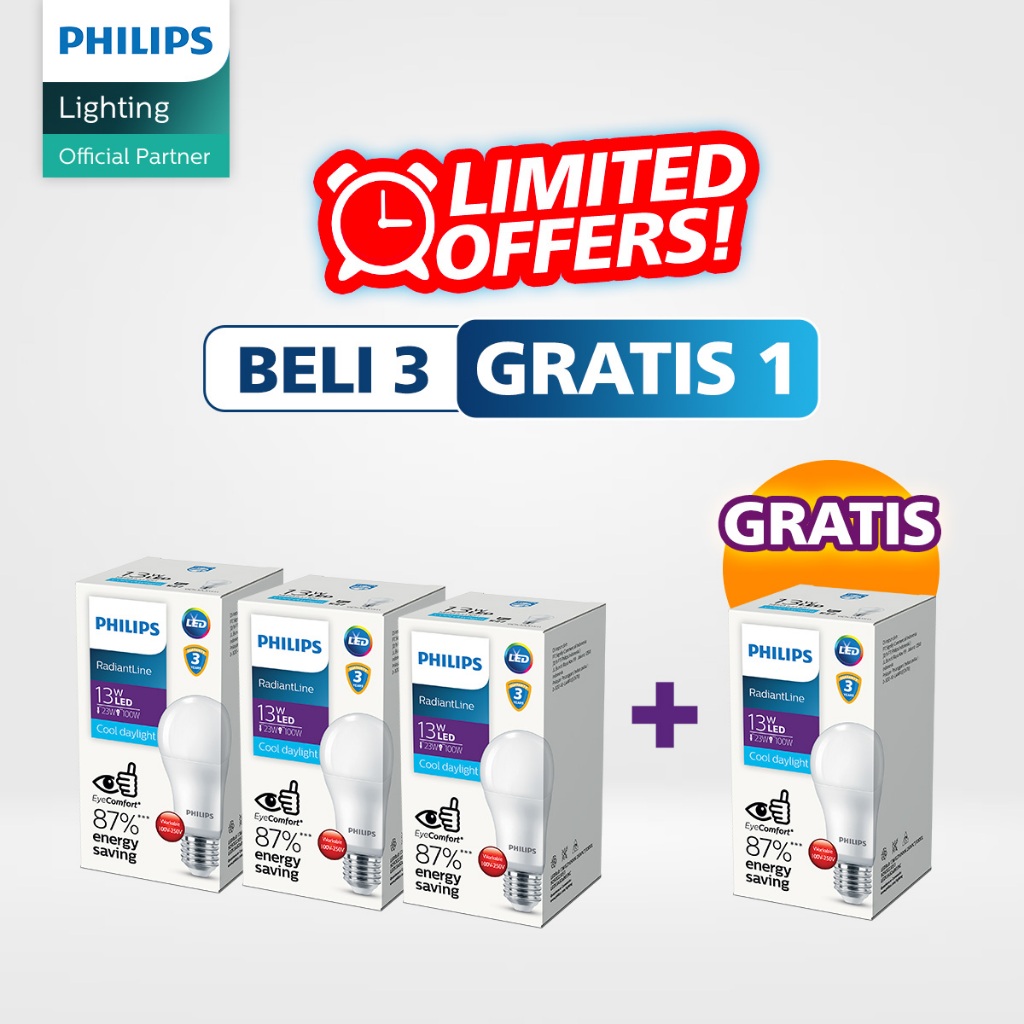 Beli 3 Gratis 1 Philips Lampu RadiantLine LEDBulb 13W Putih