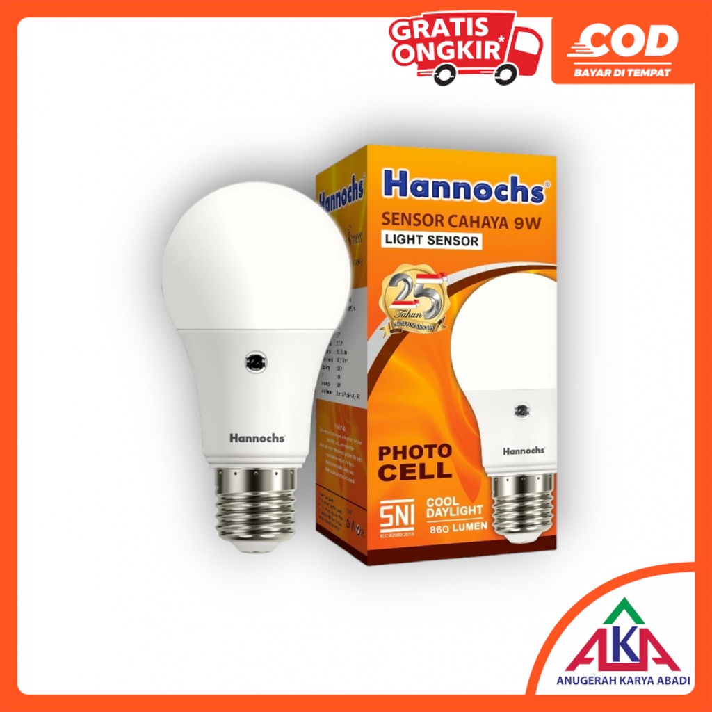 Bohlam Lampu LED HANNOCHS LIGHT SENSOR 6 / 9 / 11 Watt SNI Photo Cell Sensor Cahaya