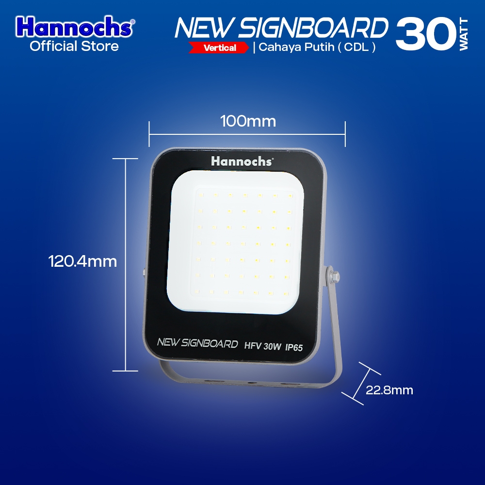 Hannochs Lampu Sorot LED Flood Light New Signboard HFV 30W Cahaya Putih (Model Vertikal)