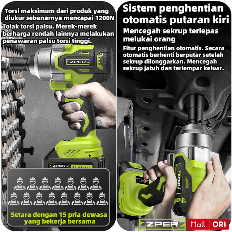 [Mall] ZPER Cordless Impact Wrench Brushless impact baterai wrench Mobil Mesin Bor Untuk Baut ZP013