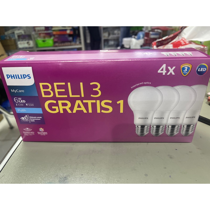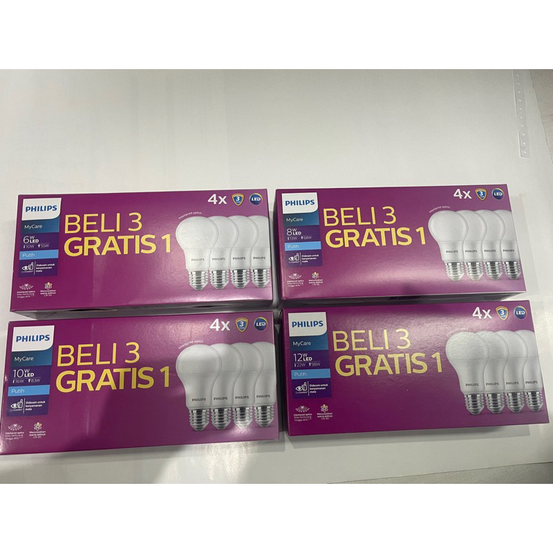 Lampu PHILIPS LED Bulb Led Philips Multipack 6W 8W 10W 12W 6 8 10 12 Watt 6500K Putih Original Termurah Beli 3 Gratis1