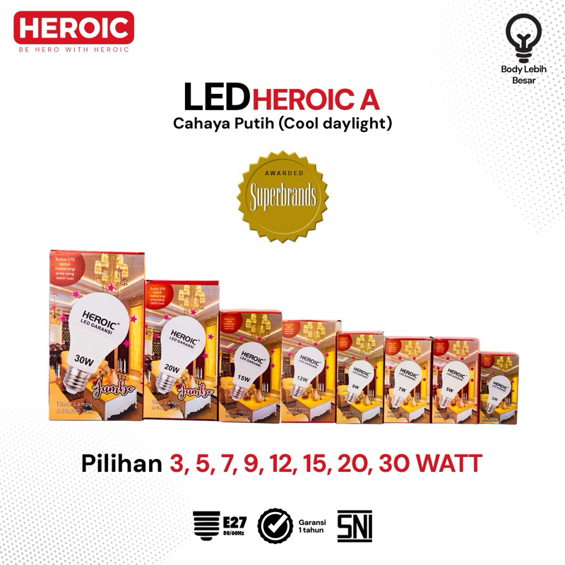 Heroic Lampu Bohlam LED Cahaya Putih Hemat Energi