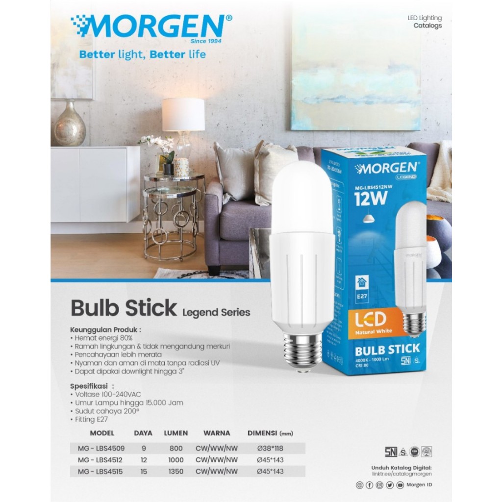 Lampu LED Bulb Stick 15W , 12W, 9W E27 Natural White 4000K MORGEN - Natural White