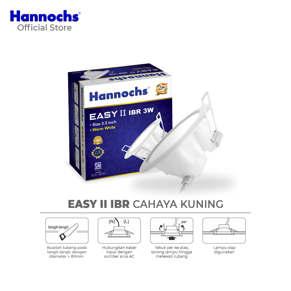 Hannochs Lampu Downlight LED EASY II 3W IBR isi 4pcs Cahaya Kuning