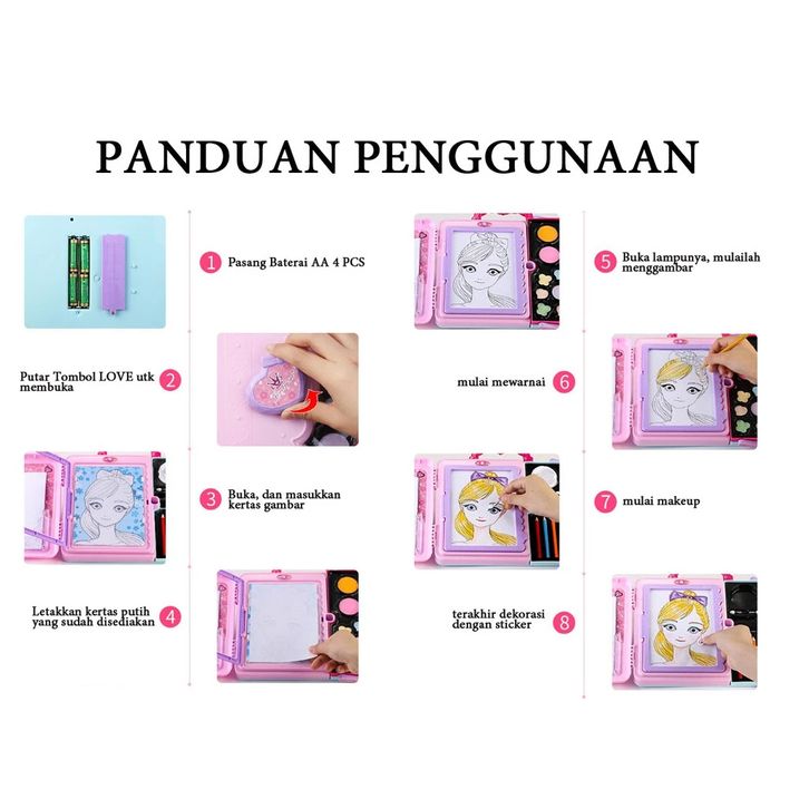 Mainan Anak Boneka Makeup + Menggambar + Mewarnai + Lampu Mainan anak perempuan murah terbaru