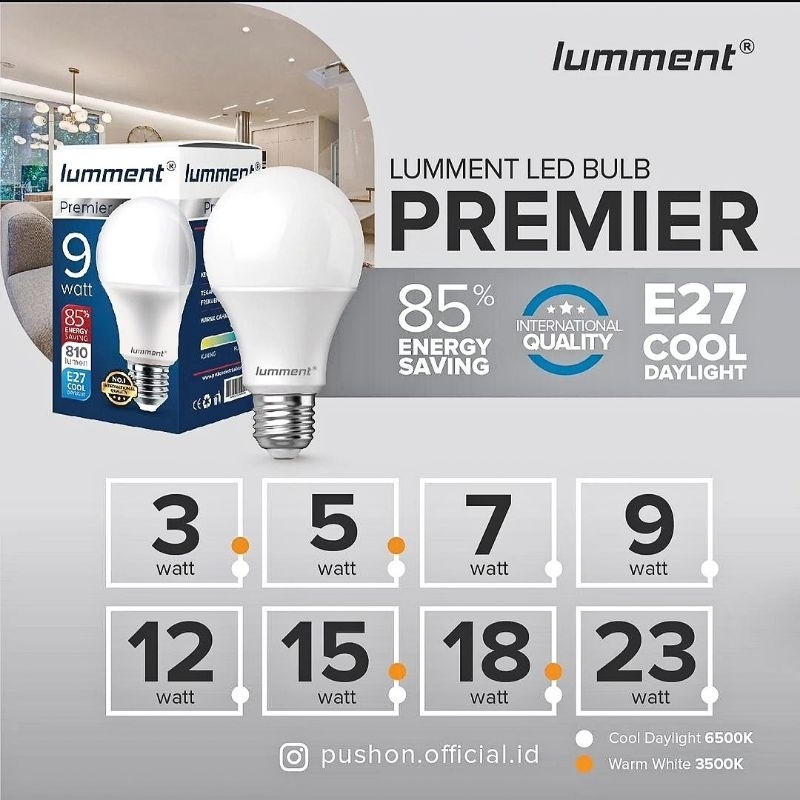 LAMPU LED 3W 5W 7W 9W 12W 15W 18W 23 WATT BOHLAM BULB E27 PUTIH COOLDAY LIGHT KUNING WARM - PREMIER