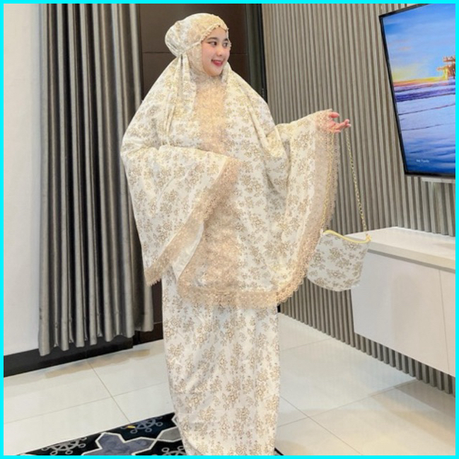 Latifa - Mukena Falisha Dewasa 2in1 Katun Foil Renda Mewah Bahan Adem