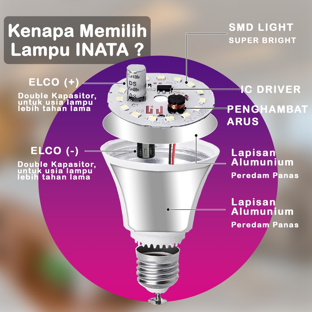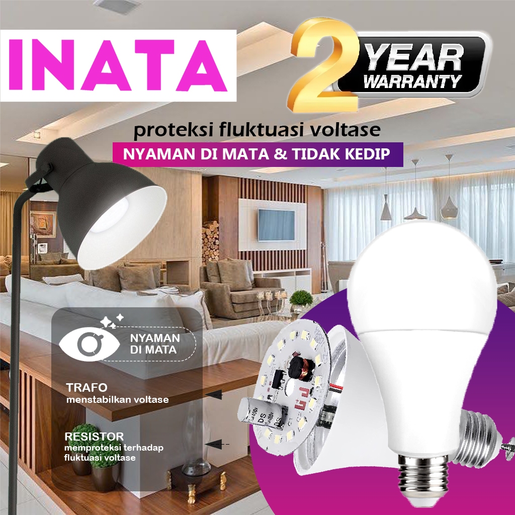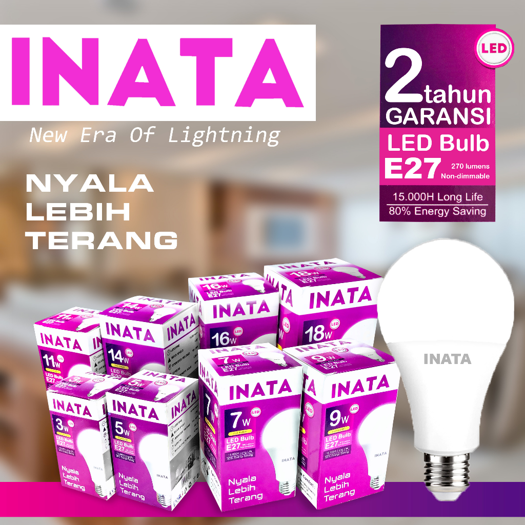 Inata Lampu LED Bulb Garansi 2 Tahun 20 Watt 18 Watt 16 Watt 15 Watt 14 Watt 12 Watt 11 Watt 9 Watt 7 Watt 5 Watt Putih LED Bulb Garansi