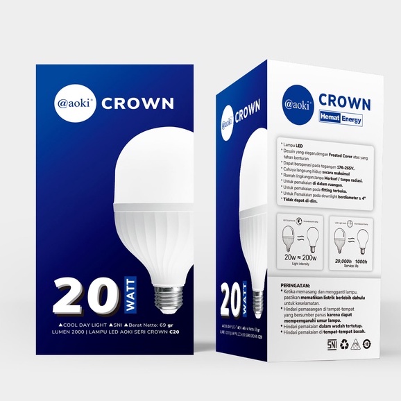 Aoki Lampu Led Bulb Seri Crown Super Terang Hemat Energy