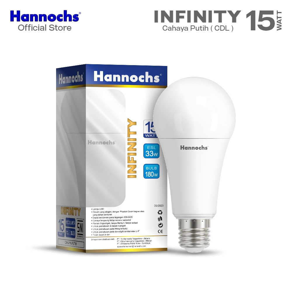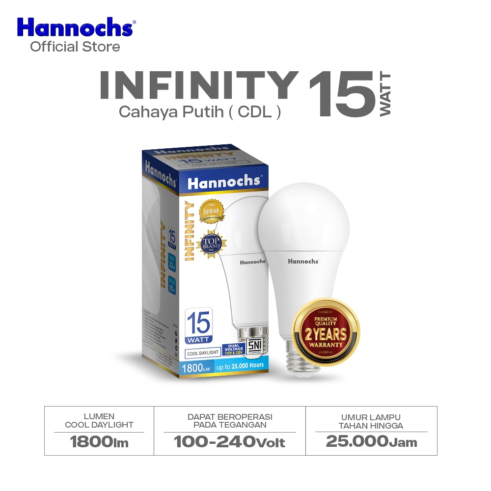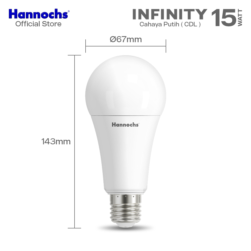 Hannochs Lampu Bohlam LED Infinity 15W Cahaya Putih isi 2pcs