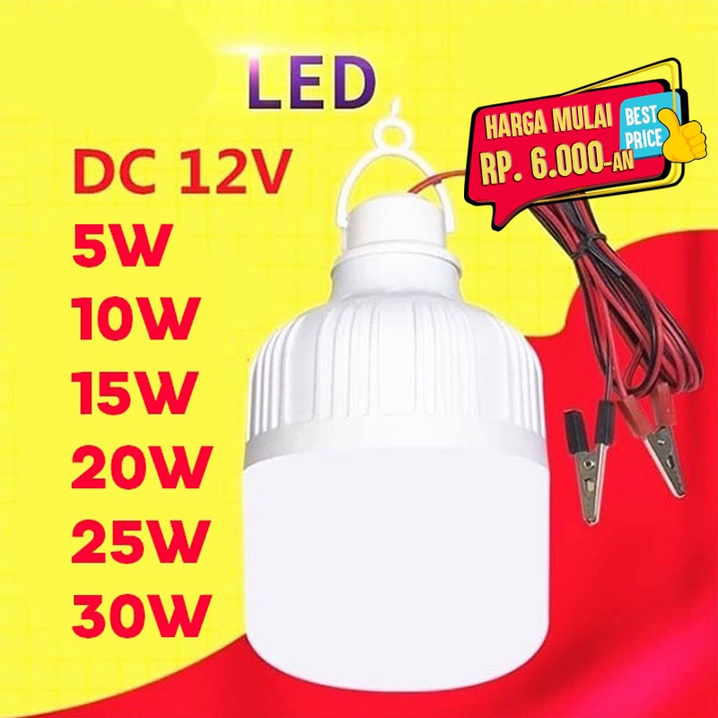 Lampu Bohlam LED DC 12V Jepit ke Baterai / Aki Accu 5w 10w 15w 20w 25w 30w