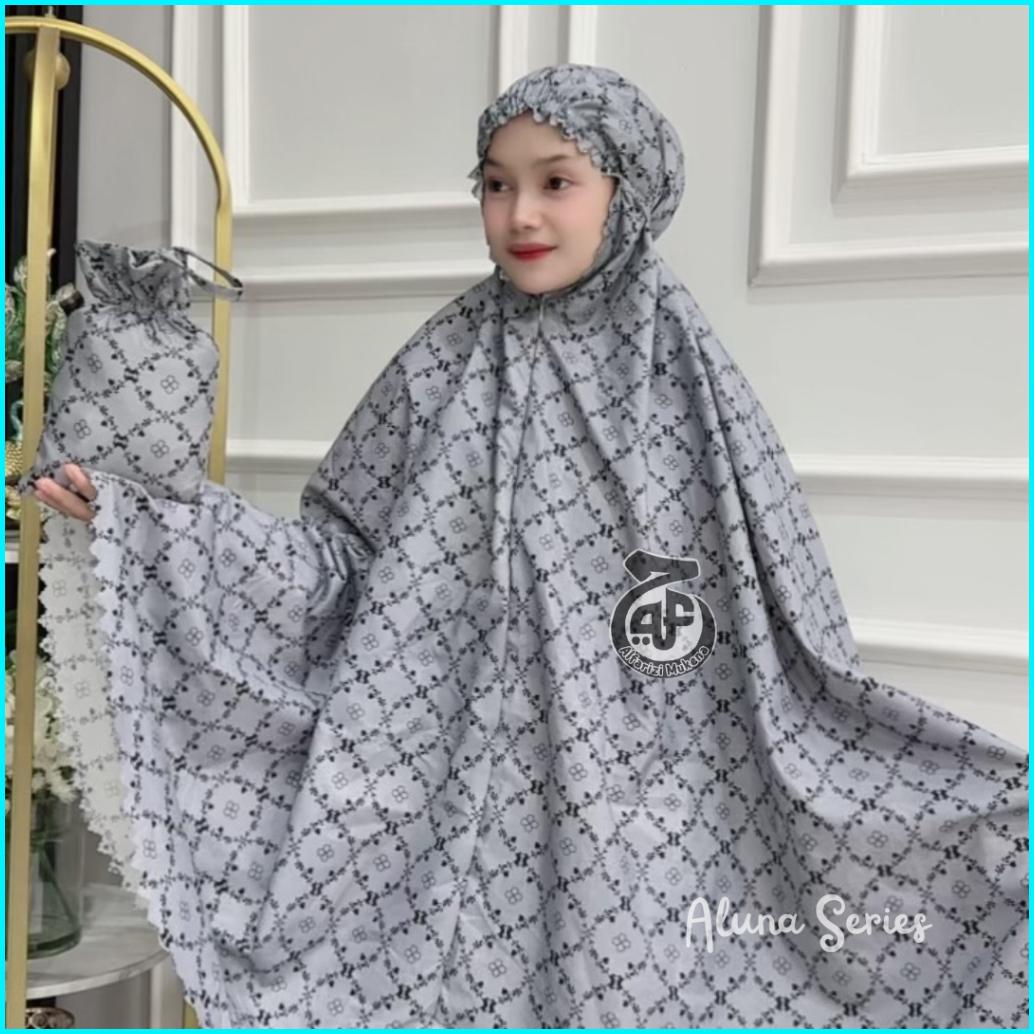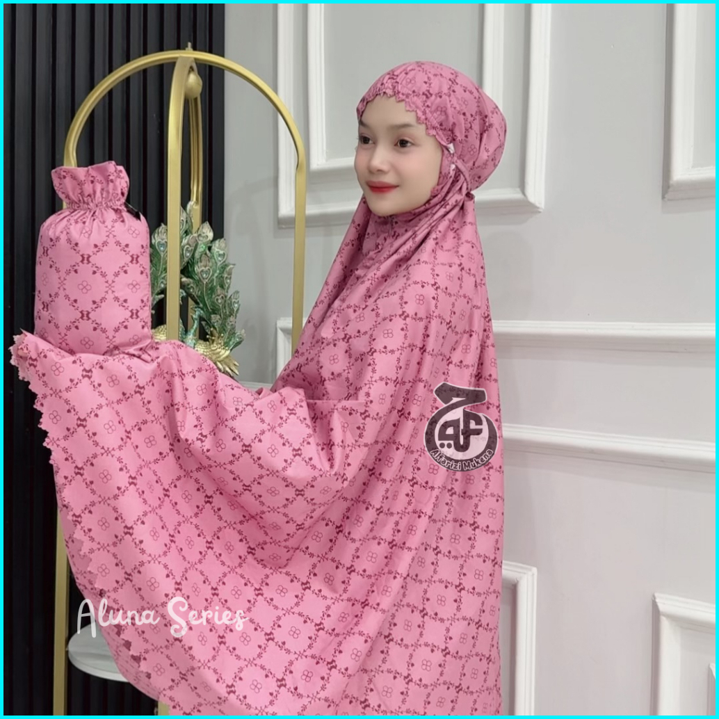 Mukena Dewasa Travel Terbaru Motif Alluna Series Dahi Kerut 2 In 1 Resleting Dagu Katuin Premium