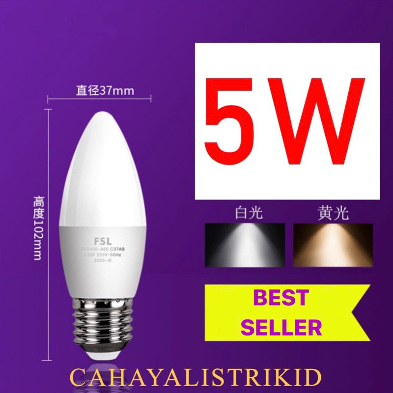 LAMPU CANDEL LED BOHLAM SUSU CANDEL SMD 5WATT E27 PUTIH KUNING