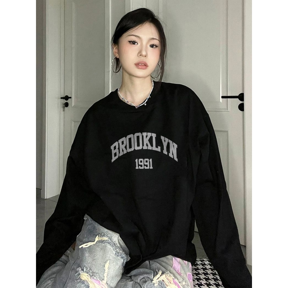Po Floret Sweater Oversize Baju Kaos Katun Cetak Huruf Lengan Panjang Sweatshirts Katun Murni Wanita Top/Switer Wanita K