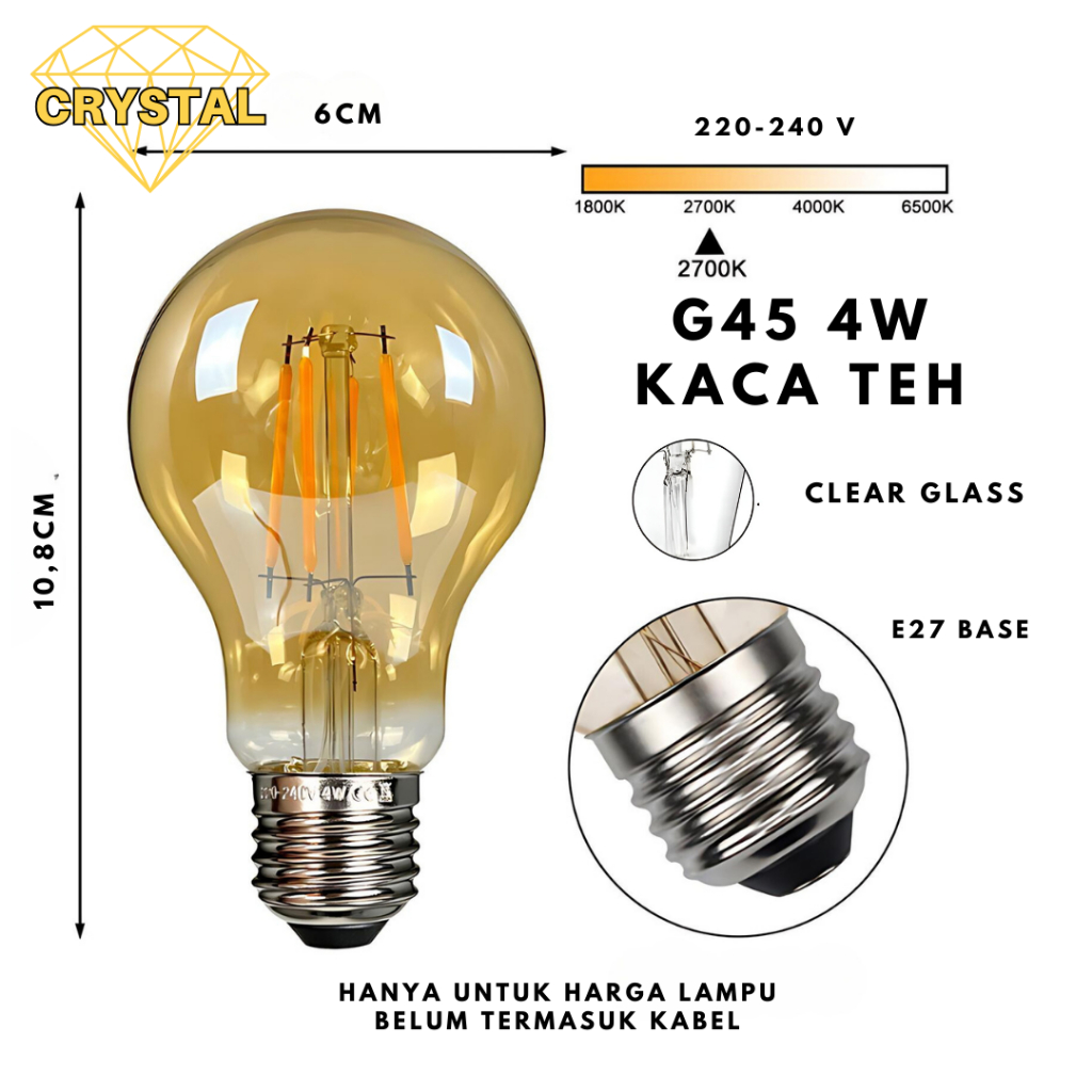 Lampu Bohlam LED G45 4W Filamen Cahaya Kuning Putih Lampu Caffe Cafe Outdoor Indoor Lampu Dinding