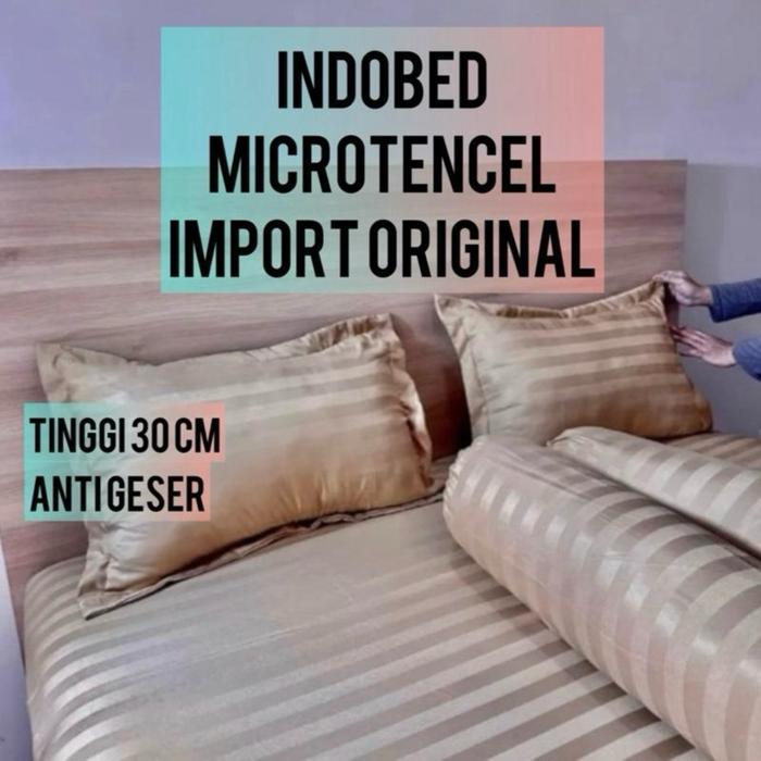 Indobed Tinggi 30: Sprei Hotel Microtensel Import Original Karet Anti Geser Set Sarung Bantal Dan Guling - Dusty Tua, 20