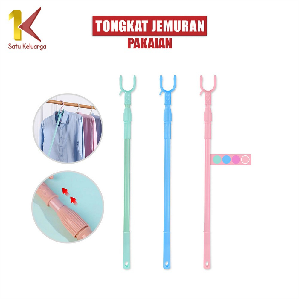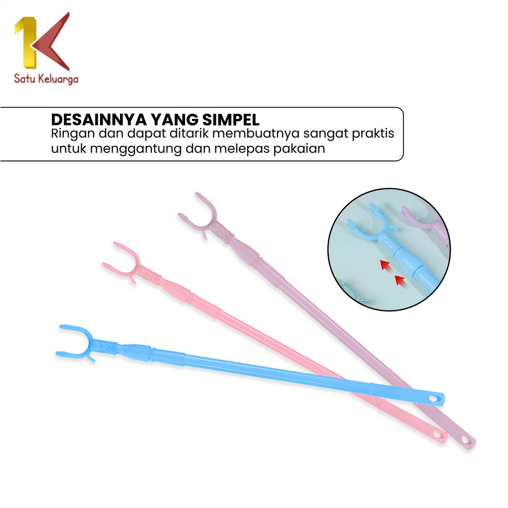 Satu Keluarga Tongkat Jemuran Pengait Pakaian Bisa Setel Panjang Pendek C1116 Galah Gantungan Baju