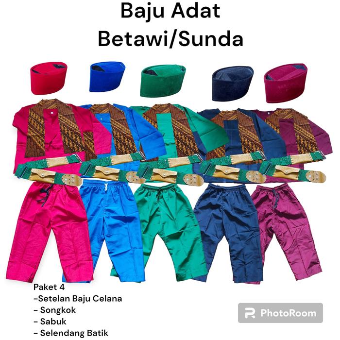 Baju Pangsi Betawi Untuk Dewasa Dapat Peci I Setelan Baju Adat Betawi - Paket 6, Size 1 Usia 1-3