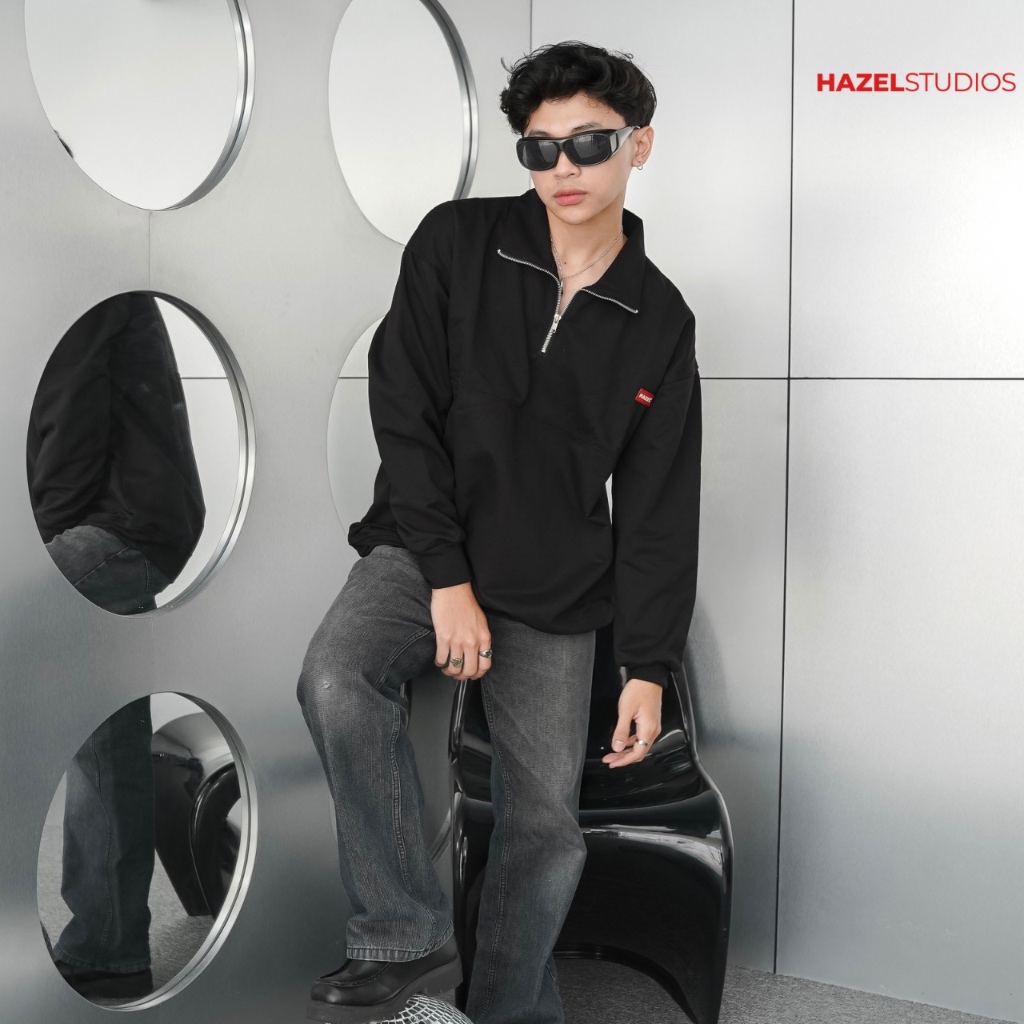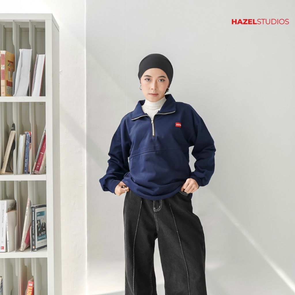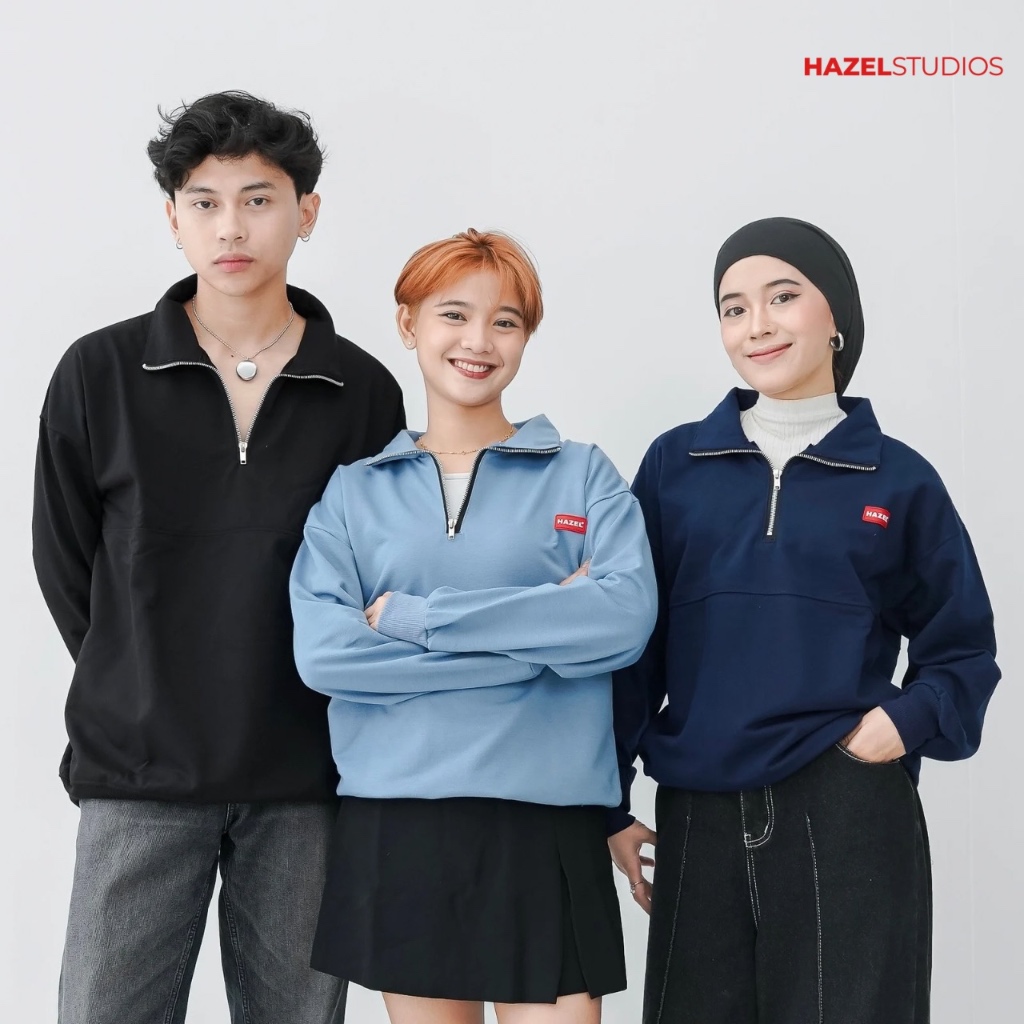 Hazel Jaket Halfzip Sweatshirt Unisex Size M- Xxl ( Pria & Wanita )