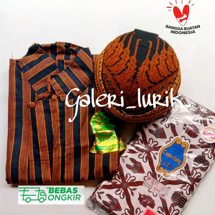 Baju Surjan Lurik Adat Jawa Paket Lengkap Lurik+Bawahan Free Blangkon - Satu Setel, S