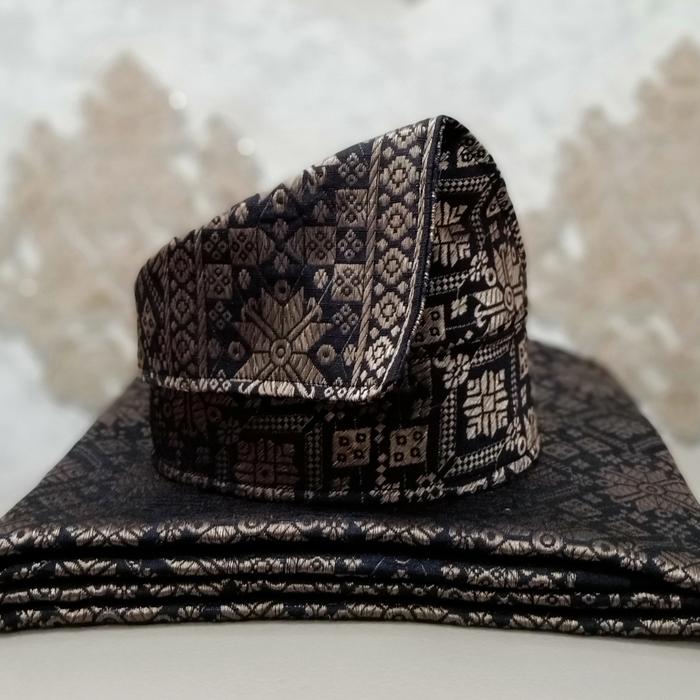 Set Tanjak Dan Songket Khas Melayu Kualitas Premium - Hitam Coklat