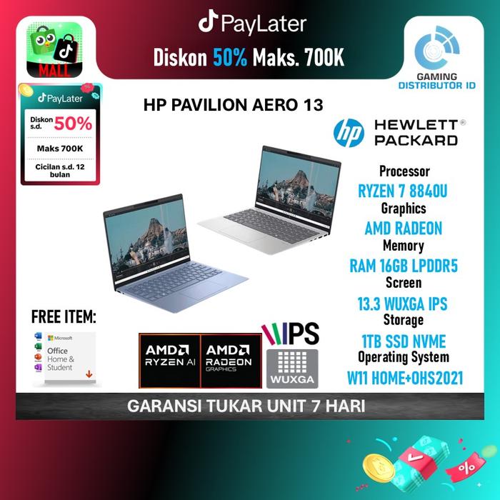 Laptop Hp Pavilion Aero 13 Ryzen 7 16Gb 1Tb W11+Ohs 13.3Wuxga Ips - Unit Only, R5 8640 16/512