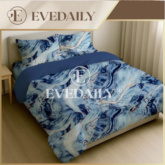 Bedcover Set Motif Malagasi Marble Mix Plain Navy- 90X200 - 200X200 - Evedaily - 90X200, 10