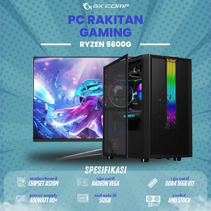 Pc Rakitan Gaming Full Set Amd Ryzen 5 5600G | Ram 16Gb | Ssd - Pc Only, 16Gb/256Gb Ssd