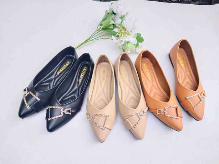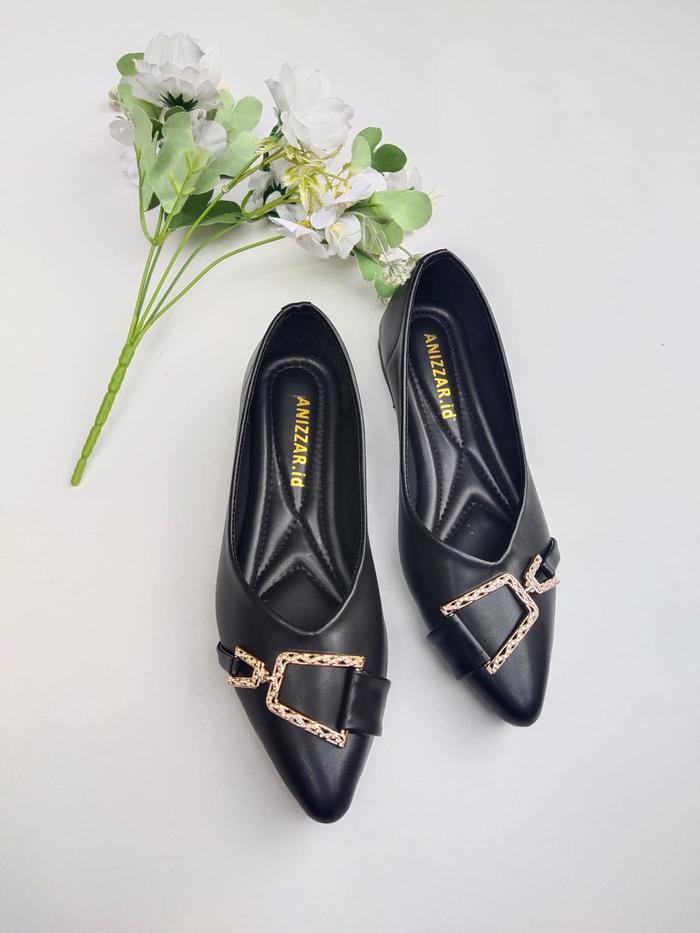 ANIZZAR.ID SEPATU FLATSHOES AMIRA SHOES FLAT WANITA KASUAL KARET HITAM HITAM - HITAM, 37