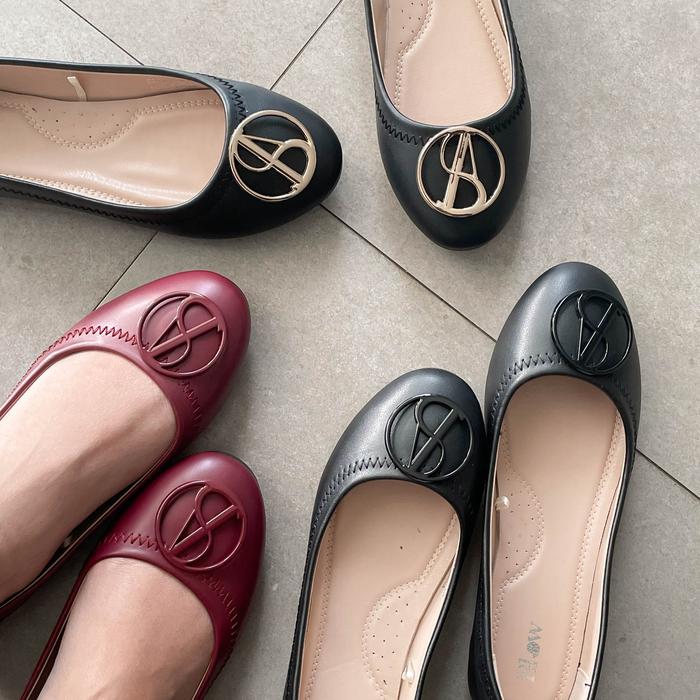 BLOW YOURA SOPHIE SAB FLATS SHOES SEPATU HITAM WANITA BALET WOMEN SHOES BLNW 0062 - BLACK/GOLD SAB, 41