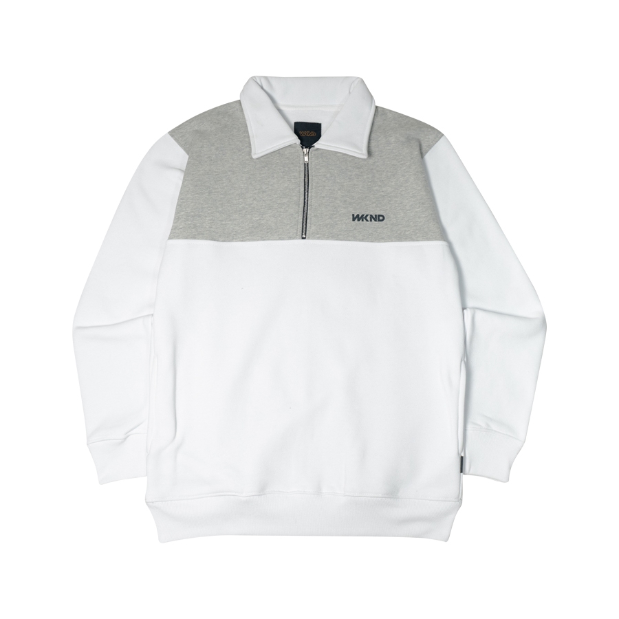 Crewneck Half Zip Sweater Putih Abu Bambi Wknd 1258
