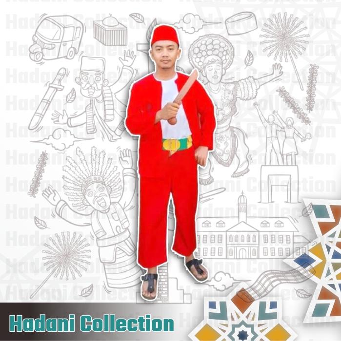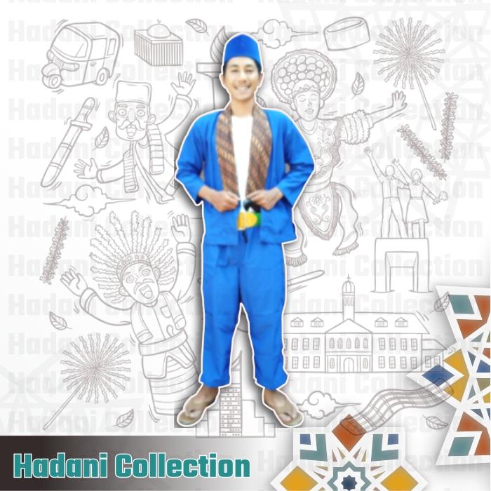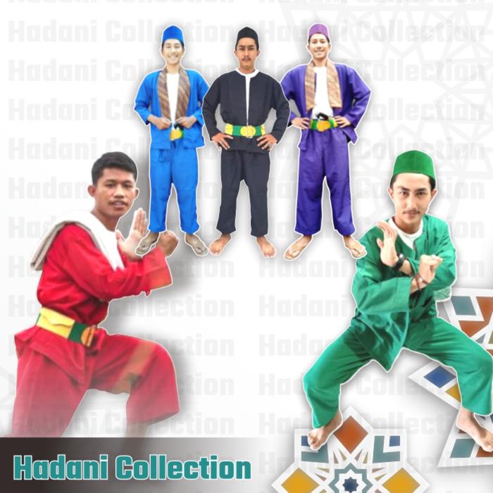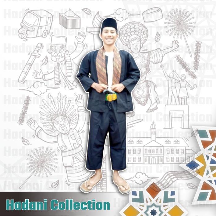 Baju Pangsi Betawi Dewasa Pangsi Dewasa Sunda Baju Silat Pangsi Dewasa Setelan Peci Sabuk Pria - Hitam, S