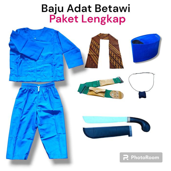 Pakaian Adat Betawi Anak Dan Dewasa Setelan Baju Pangsi Lengkap - Merah, Size 1