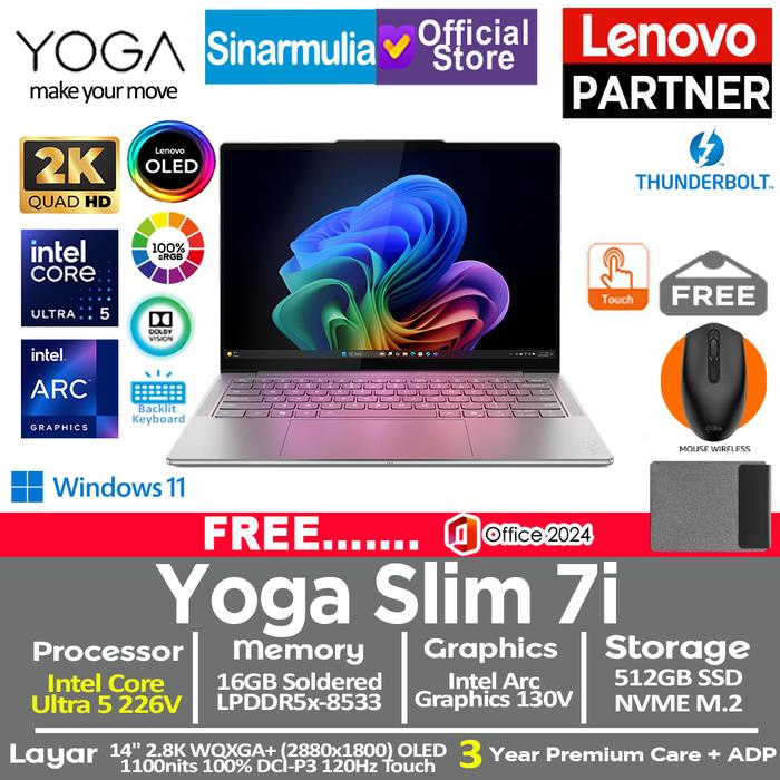 Lenovo Yoga Slim 7I Aura Edition Ultra 5 226V 512Gb Ssd 16Gb 2.8K Wqxga+ Oled 120Hz 100 PERSENSrgb Copilot+ Touch Win11+Ohs -