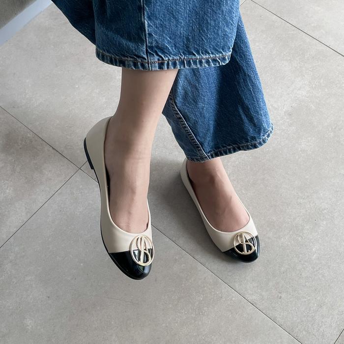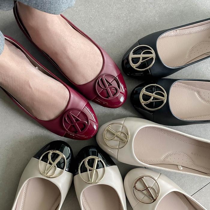 BLOW YURI SAB FLATS SHOES SEPATU HITAM WANITA BALET WOMEN SHOES BLNW 0085 - BEIGE/BLACK, 41