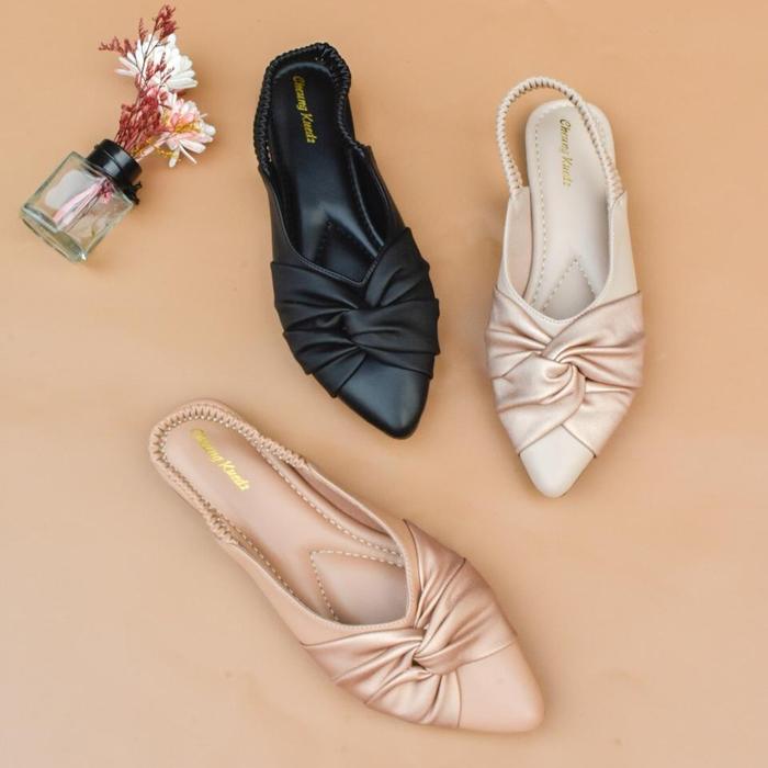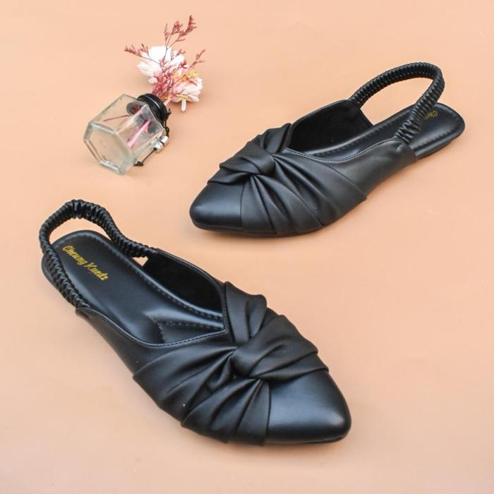CHEUNG KUEDZ ANGGREK FLATSHOES WANITA TALI KARET BELAKANG - HITAM, 37