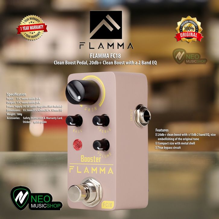 FLAMMA FC18 Clean Boost Pedal, 20db+ Clean Boost with a 2 Band EQ