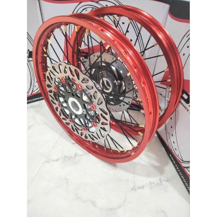 VELG PAKETAN JARI JARI RING 17 140 & 160 MERK VROSSI MERAH-HITAM BUAT MOTOR NINJA 150R / RR / SS SATU SET